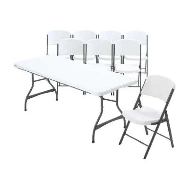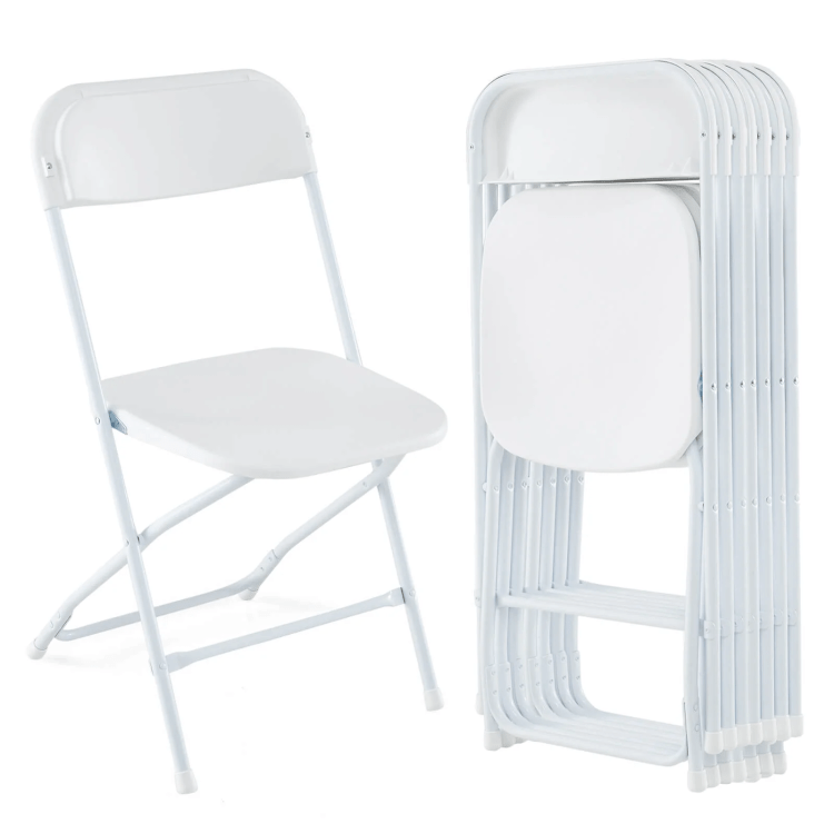 6ft White TableTable and 6 Chairs Party Package:6ft White Table1Dropdown13241431_32413311100 A clean, classic 6-foot white folding table—72" long, 30" wide, and 29" high—perfect for serving food, displaying decorations, hosting games, or creating a comfortable seating surface at parties and events. Tables and chairs are delivered to your location but are not set up; at the end of your rental please fold the table and have it ready for pickup. Sturdy, versatile, and easy to pair with any color scheme, this table is a reliable workhorse for receptions, yard parties, vendor booths, and indoor gatherings.Folding ChairsTable and 6 Chairs Party Package:Folding Chairs1Dropdown63241431_32413471100 Our folding chairs are perfect for any event or occasion! They are comfortable, durable, and easy to transport. With their lightweight design and folding mechanism, they can be easily stored away when not in use. These chairs are made with high-quality materials that ensure they will withstand long-term use, providing you with the reliability and comfort you need. They also come in a variety of colors to match your theme or style. Whether it's for a wedding, a backyard BBQ, or a corporate event, our folding chairs are the ideal option for your seating needs.Tables and chairs are delivered to your location but are not set up; at the end of your rental please fold the tables and chairs and have it ready for pickup.