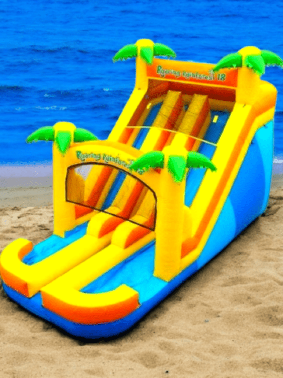 20' Roaring Rainforest Water Slide is the ultimate summer attraction that combines the thrill of a steep descent with the fun of water play. Perfect for backyard parties or community events, this exhilarating water slide features vibrant rainforest-themed designs that promise to transport kids and adults alike into a lush, tropical paradise while providing endless hours of enjoyment.