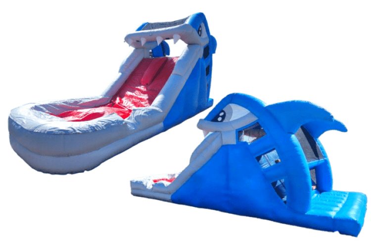 The Lil Shark Water Slide is an inflatable aquatic adventure designed for fun on sunny days. It's perfect for spicing up any party or event, offering a thrilling slide experience that mixes exciting twists with a cool water splash. Kids can enjoy a ride that feels as playful as a little shark, making every day a mini water park adventure. The Lil Sharks is Great for kids ages 2 to 8 years old. Its compact design works great in small yards.